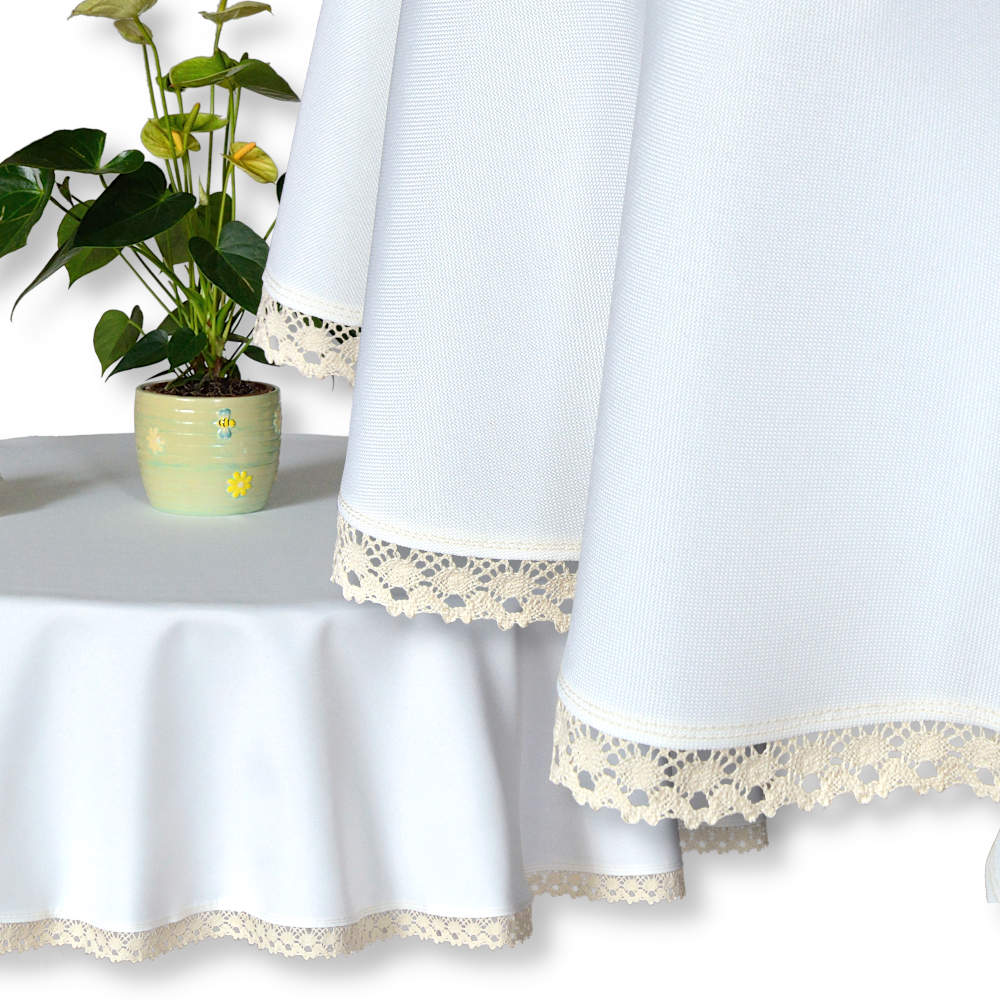Obrus okrągły ecru Ø120–Ø160 cm – dwustronny, plamoodporny, z koronką ETNO