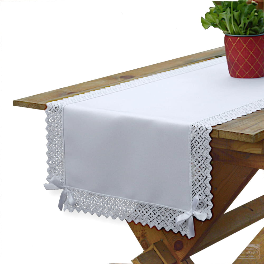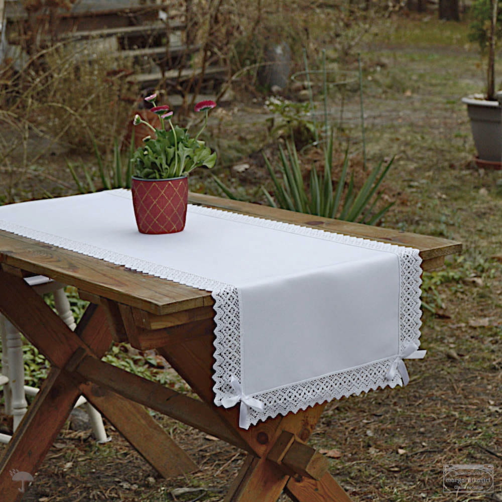 Bieżnik biały premium z koronką | szer. 40-60 cm | dł. do 220 cm
