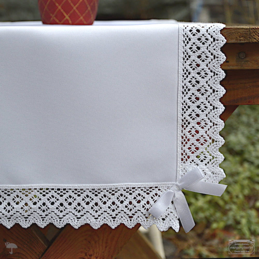 Bieżnik biały gładki z koronką Antonina – klasyka stylu na Twój stół i ławę