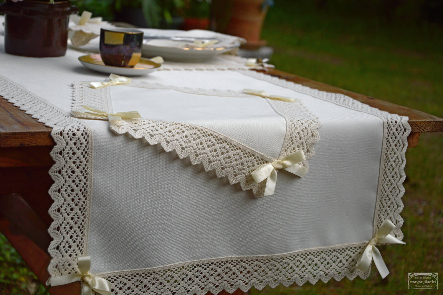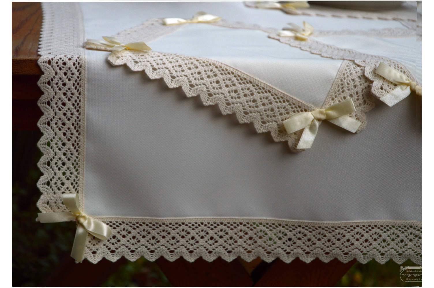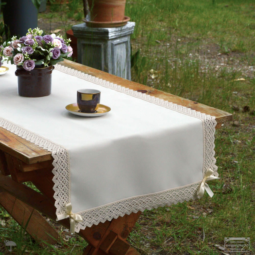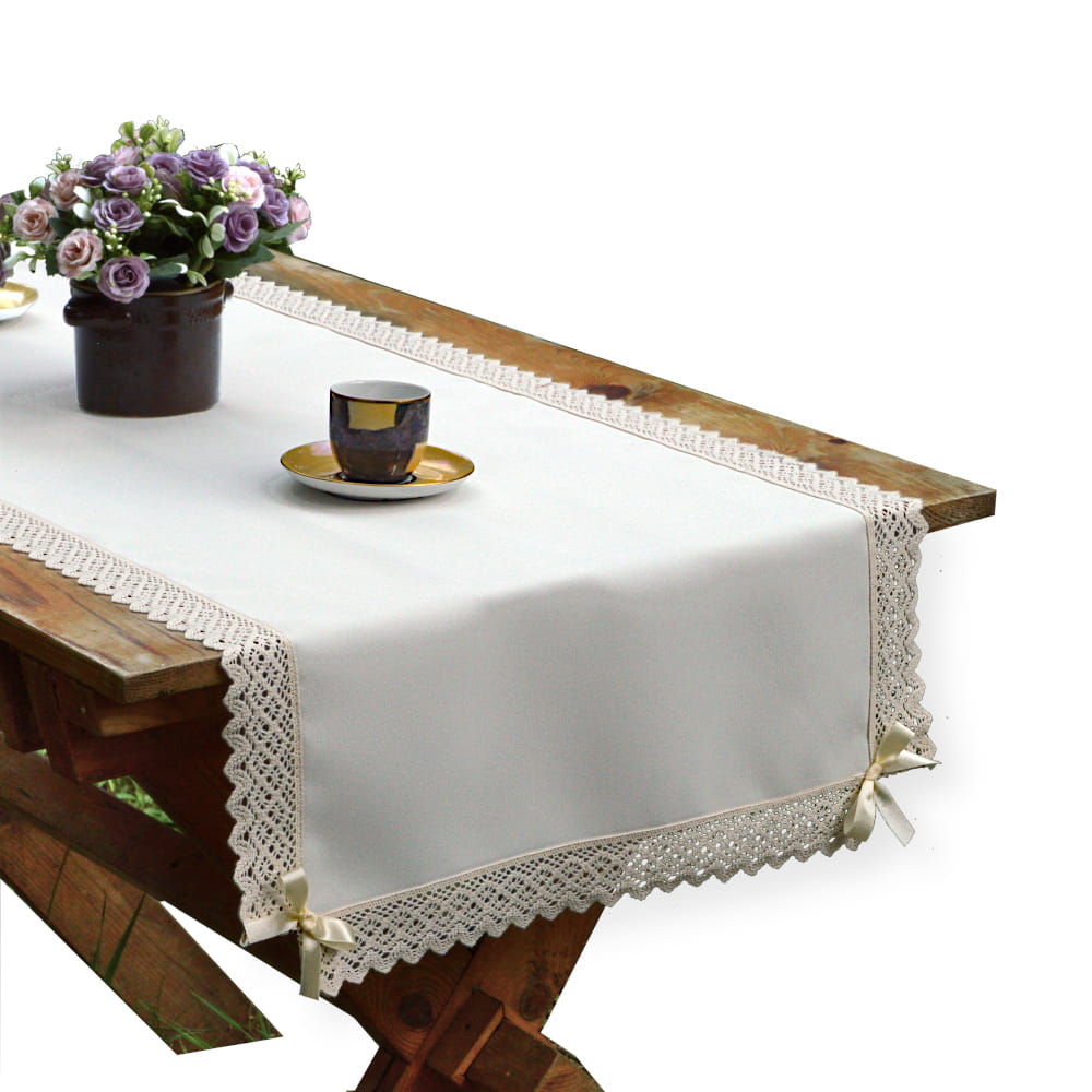 Bieżnik ecru premium z koronką ecru plamoodporny | szer. 40-60 cm | dł. do 220 cm