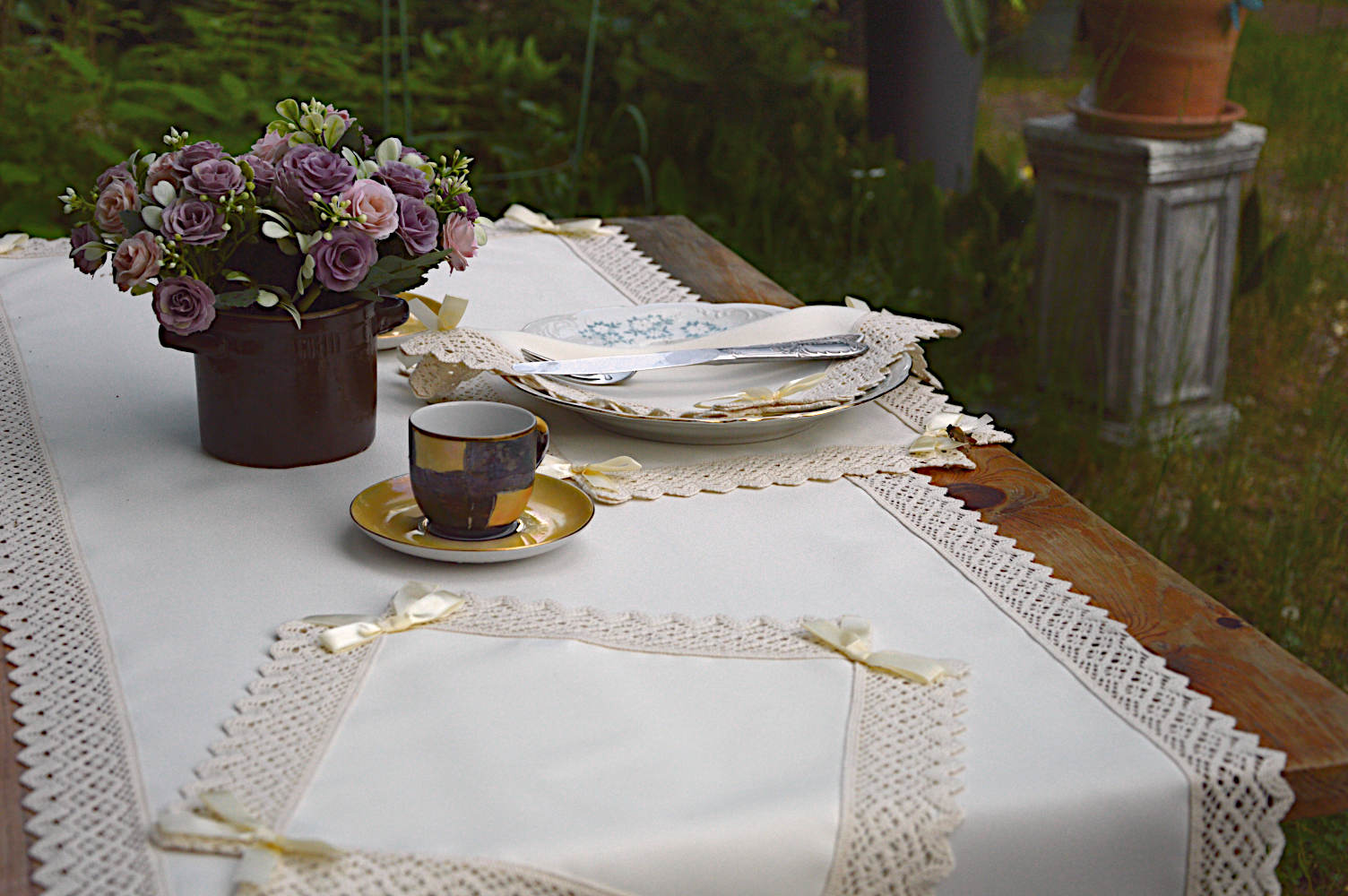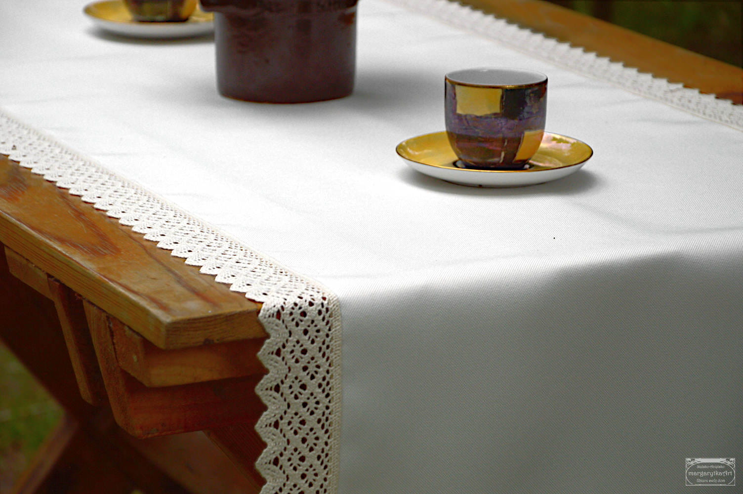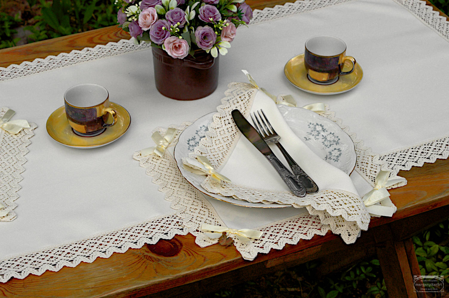 Bieżnik ecru premium z koronką ecru plamoodporny | szer. 40-60 cm | dł. do 220 cm