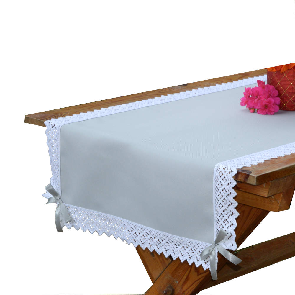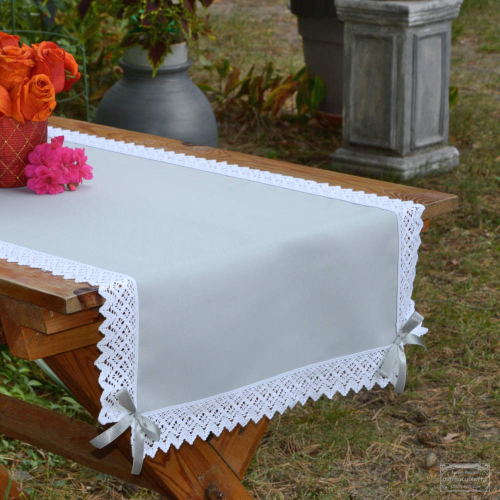 Bieżnik szary premium z koronką, białą | szer. 40-60 cm | dł. do 220 cm